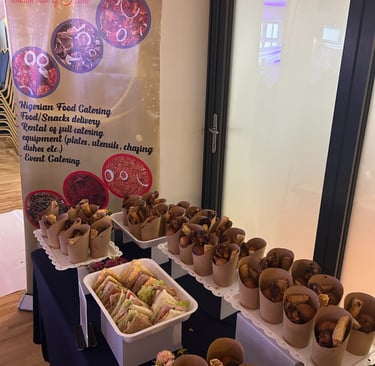 The celebration kicked off with our mouth-watering small chops and delicious sandwiches. Guests were treated to our signature puff-puff, grilled chicken, spring rolls, and samosas—the perfect way to start an unforgettable feast.